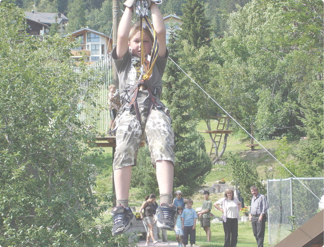 KontaktformularBei Interesse einfach Anrufenoder direkt überdas 0049 7807 30297Kletterpark in BlattenDer Kletterpark in Blatten ist die Möglichkeit Adrenalin beim Klettern freizusetzen. Nachdem man mit der nötigenAusrüstung versehen wurde, gibt es die Möglichkeit 4 verschiedene Kletterpfade zu durchlaufen. Das ganze beginnt in Blatten und geht über viele Meter bergab. Konzentrationsfähigkeit, Gleichgewicht, Koordination und Mut sind gefragt. Der Kletterpark bietet für alle Altersklassen Vergnügen und Adrenalin. Die Park wird in 4 verschieden-eingestufte Parcours unterteilt:1) Grüner Parcours - Einfach Eignet sich schon für Kinder ab 125 cm, wenn ein Erwachsener sie begleitet.Mit 5 Tyrolienns ist der Spass gewährleistet.Dauer: ca. 30 - 40 Min.2) Roter Parcours - Fun Nach dem grünen Parcours geht es gleich weiter mit dem Roten. Hier wirdein wenig Klettererfahrung und ein guter Griff erwartet.Dauer: ca 30 - 40 Min.3) Brauner Parcours - Kraft Geschicklichkeit im Klettern, Ausdauer und eine Portion Mut. Zwischen dem roten Parcours und dem Braunen liegt eine kleine Pause.Dauer: ca. 30 Min.4) Schwarzer Parcours - Spektakulär Für Wagemutige: In luftiger Höhe die Seilfahrt auf der über 200 Meter langen Tyrolienne geniessen. Beim Abstieg ist Geschicklichkeit und Mut gefragt! Nur für schwindelfreie Sportler.